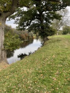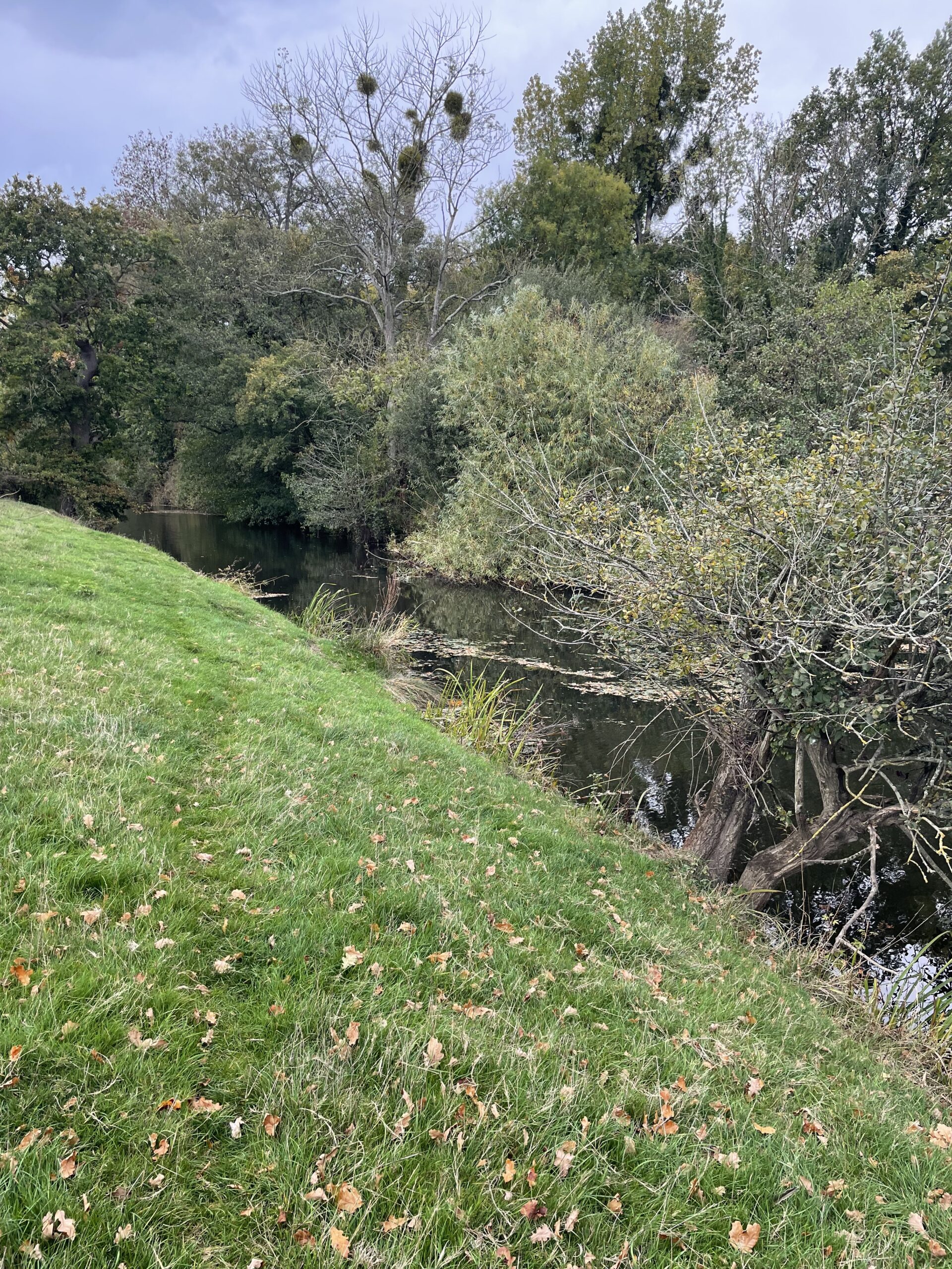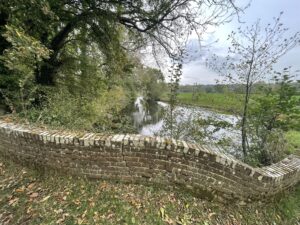 Walk over the Queen Anne Bridge and left and right is ‘The Backwater.’ This is more like a canal, with numerous deep excavated (many years ago) holes in the water. Walk a bit further (with the sewage farm to your right) and you will come to the river and the bridge over.