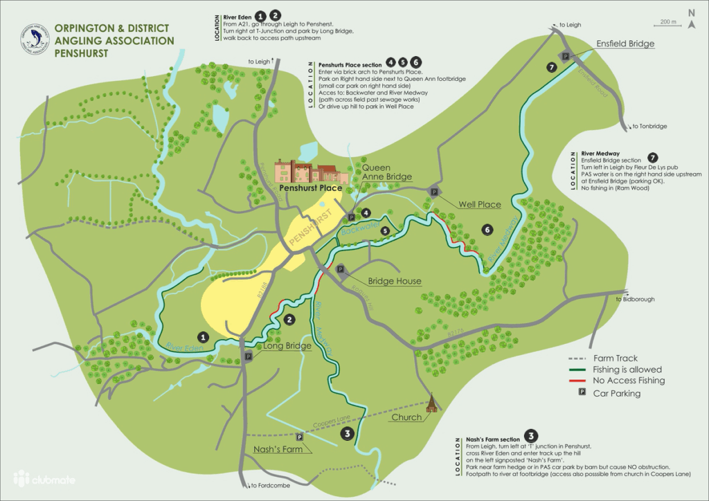 Remember you are fishing in the grounds of the Penshurst Estate. You are on farmland, so keep to the Country Code. Close all gates behind you, do not leave any litter at any time, and keep to the footpaths. Keep close to the river; do not take short cuts across fields. Do not interfere with livestock.